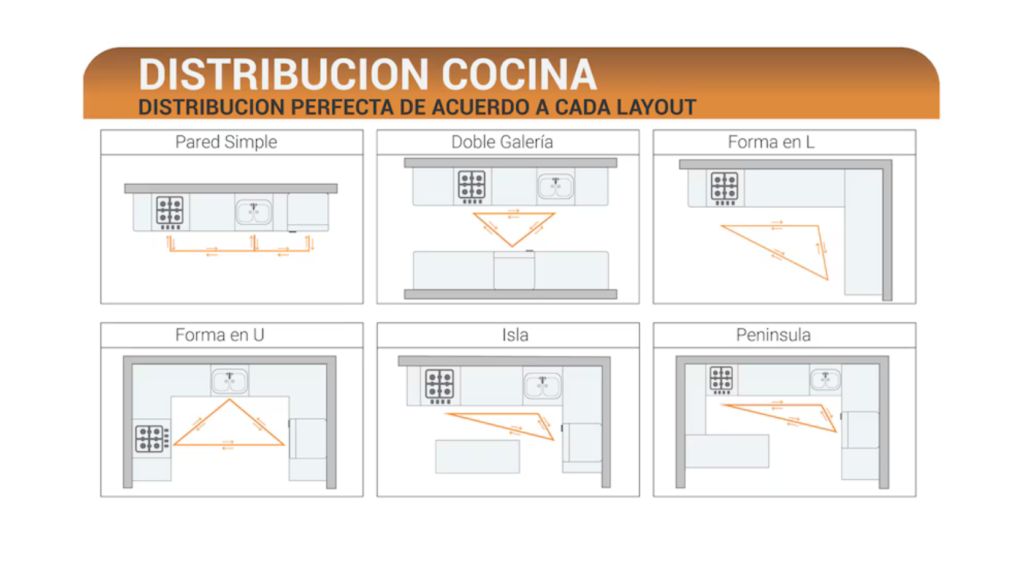 En la cocina, la lógica funcional se traduce en eficiencia diaria. El llamado “triángulo de trabajo”, que conecta refrigerador, fregadero y estufa en un recorrido fluido, permite reducir desplazamientos innecesarios. Cada paso adicional que se evita no solo ahorra tiempo, sino también energía física y mental, mejorando la experiencia cotidiana.